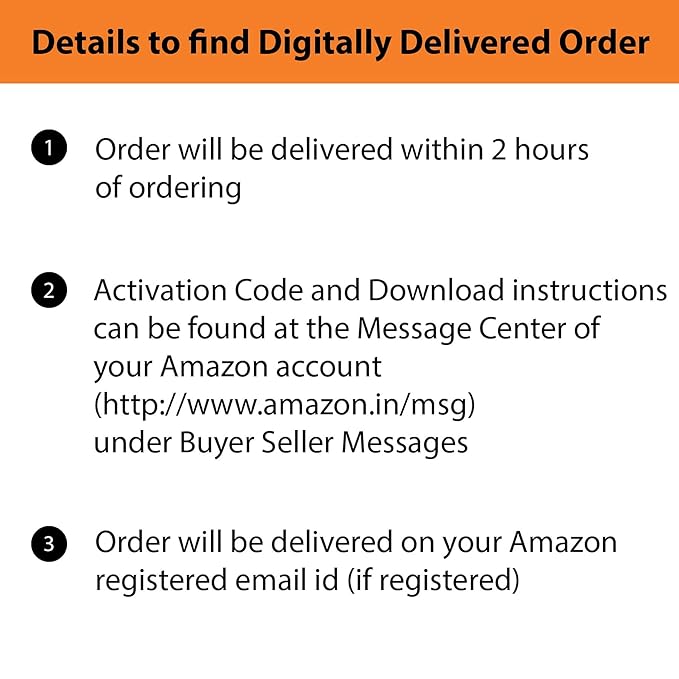 - After ordering, the activation code and download link will be available in ‘Buyer/Seller messages’ under Message Centre at “amazon.in/msg” and also emailed to your Amazon regd. email ID in 2 hrs
